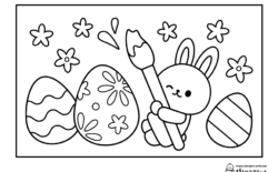 イースターエッグに絵を描くうさぎ【春ぬりえ】