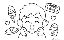 食べ物が好きな女の子【食べ物ぬりえ】