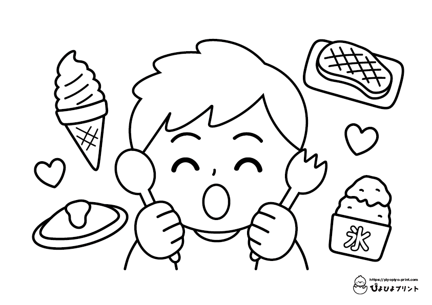食べ物が好きな男の子【食べ物ぬりえ】