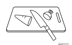 人参を切る包丁とまな板【ぬりえ】