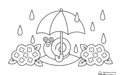 傘・かたつむり・紫陽花【梅雨ぬりえ】
